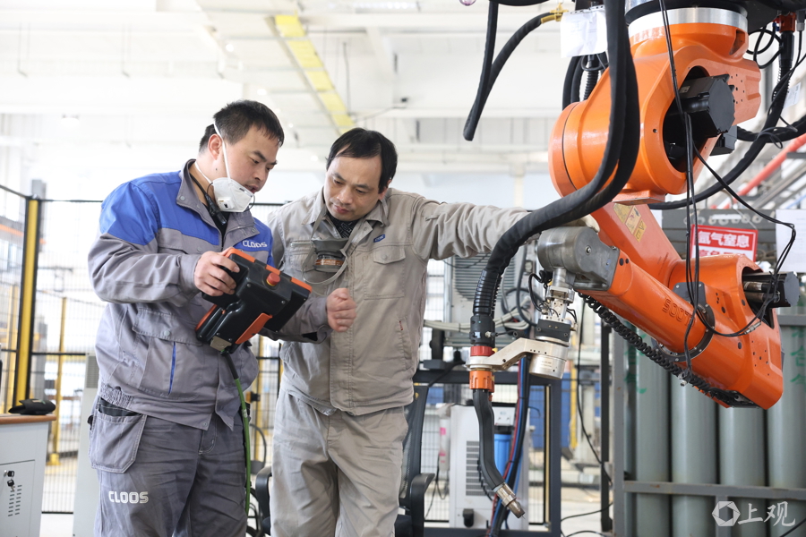 车间一派火热。工人们高效协同作业。