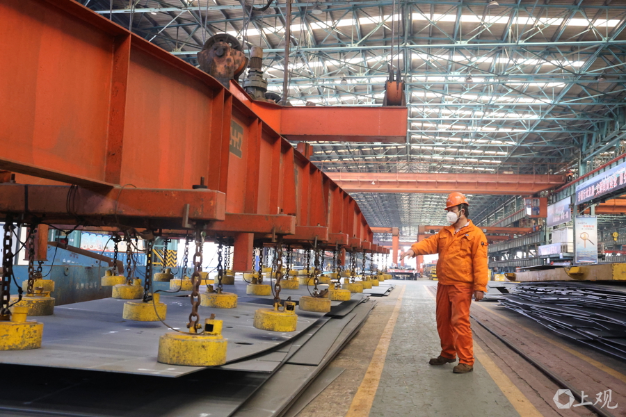 造船第一步,抓取钢板切割下料。